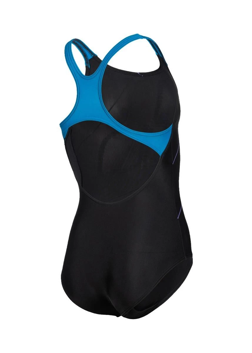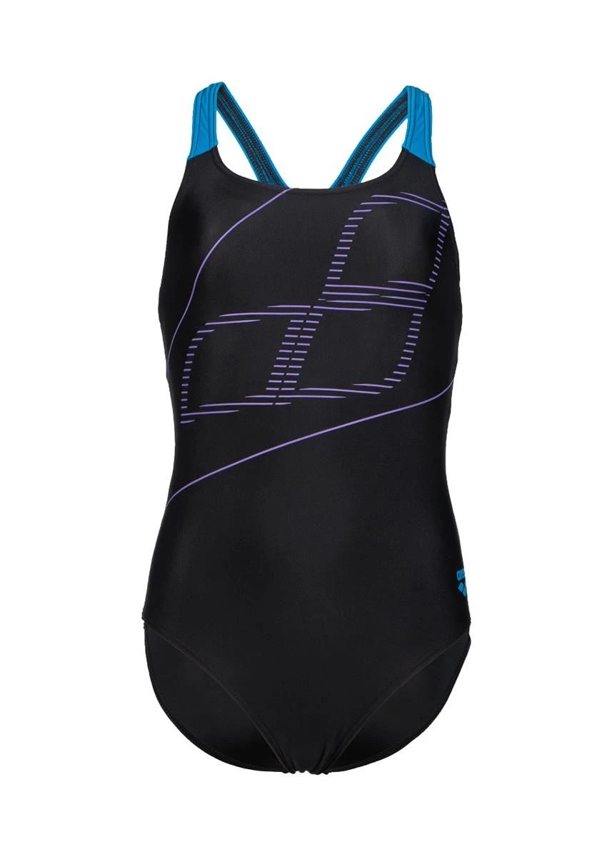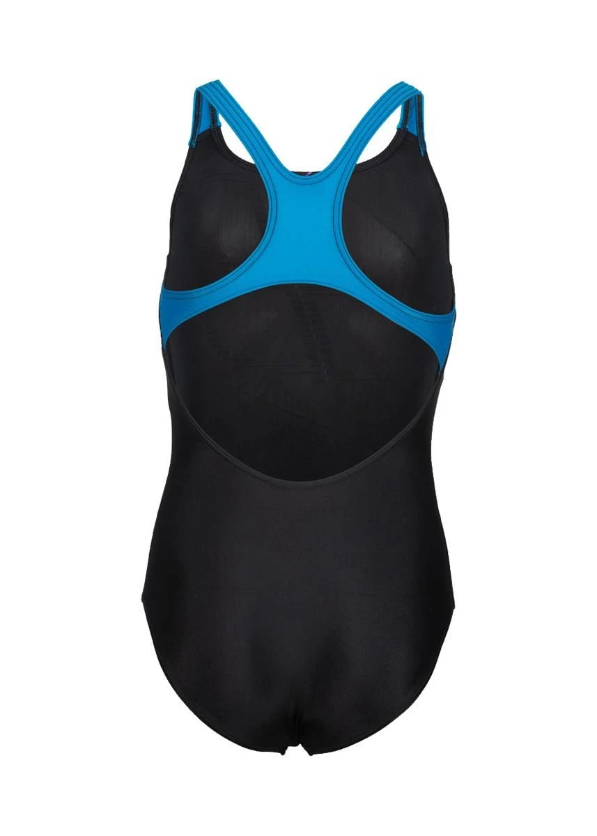 The Arena Girl’s Swim Pro Logo Swimsuit in Black and Turquoise is the ideal swimsuit for intense training days and regular pool use.