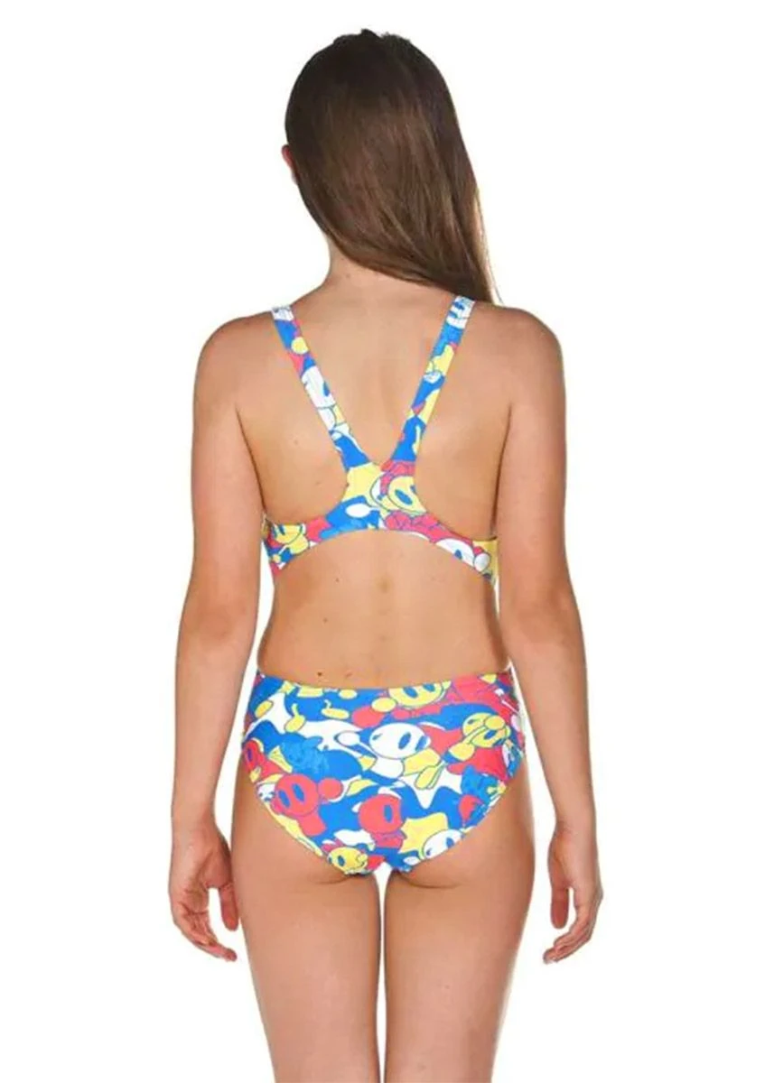 A great choice for regular training sessions and leisurely trips to the pool, this Arena girls swimsuit has been printed with a fun “kun” print in a royal blue camouflage pattern that looks good both in and out of the water.