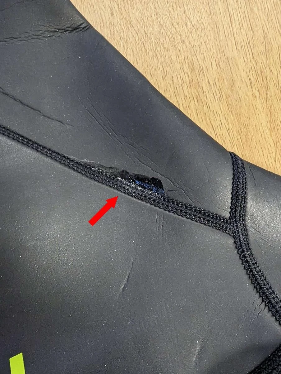 This Dare2Tri Swimrun wetsuit had a hole nr the seam which had been glued as highlighted in attached images.