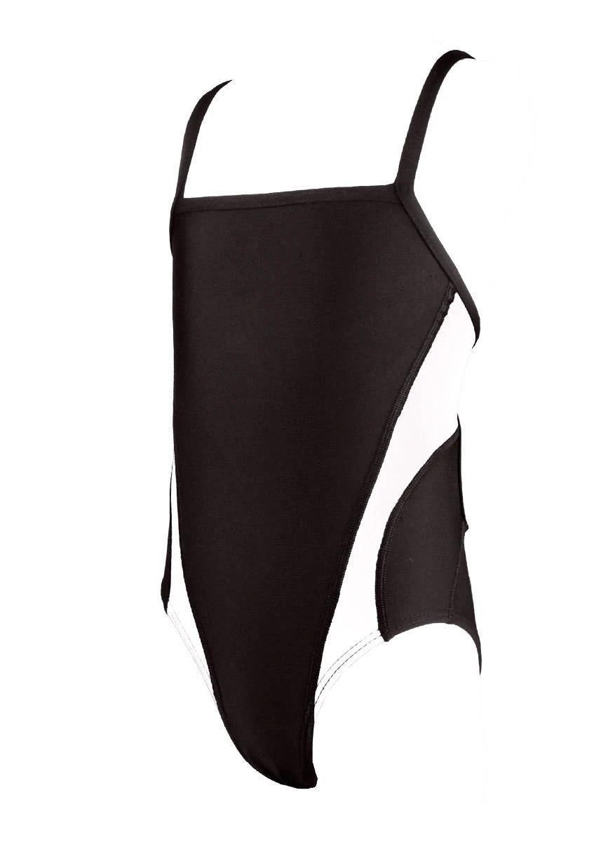 This swimsuit is designed with thin shoulder straps for enhanced shoulder mobility, and is ideal for those that swim outside with reduced tan lines.