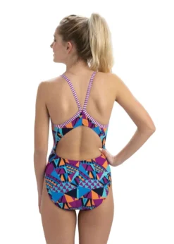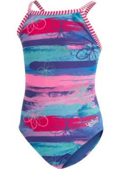Uglies Girl’s Saxen Low X-Back One Piece Swimsuit – Blue / Pink