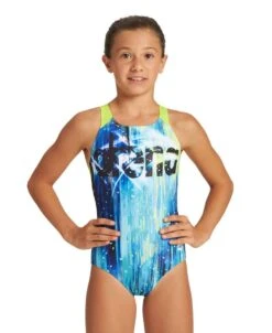 Arena Girl’s Carnival Print Lightdrop Back Swimsuit – Soft Green/Multi