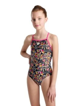 Arena Girl’s Allover Lightdrop Swimsuit – Freak Rose/Black/Multi