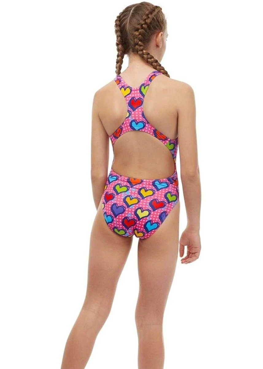 The Maru girls pollyanna pacer rave back swimsuit is the perfect suit for young and aspiring swimmers, the suit features thick and supportive straps, but are not restrictive due to the open shoulder and back design.