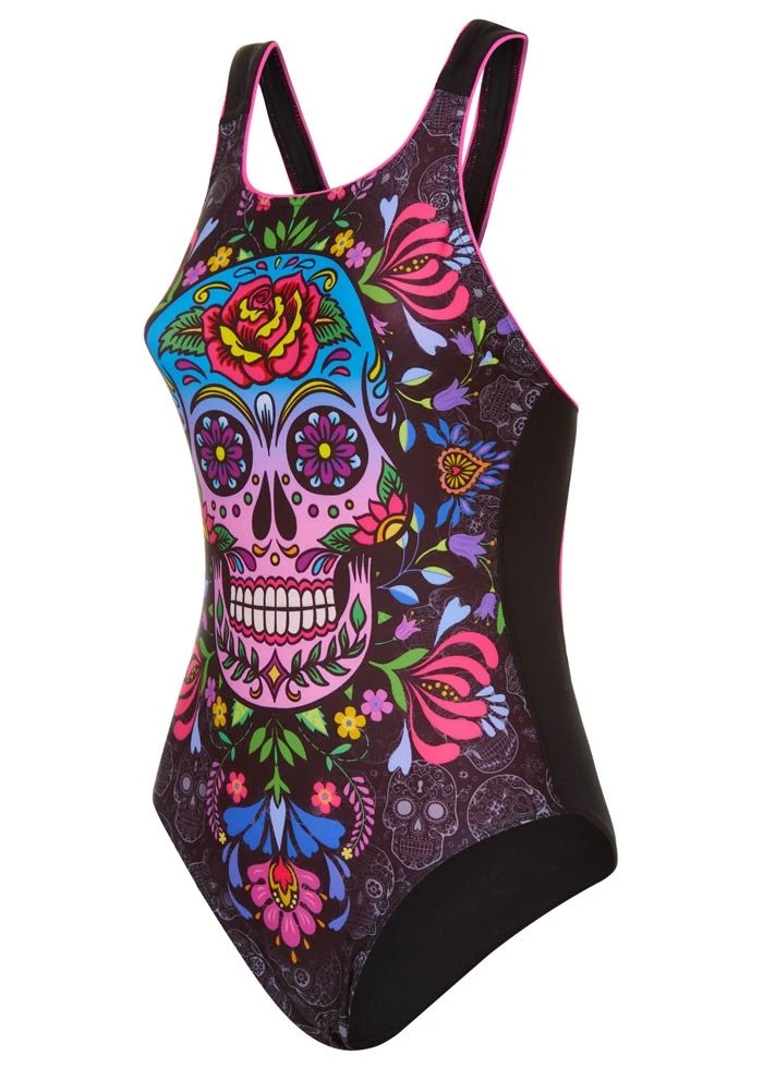 The Maru skulls ‘n’ roses pacer vee back costume is colourful and comfortable, with a shape that follows the natural curvature of the body and thick straps for added support when swimming, yet range of motion isn’t compromised due to the functional V-shaped open-back. The suit is also chlorine resistant to last longer, and means you can train for longer without the worry of wear and tear.