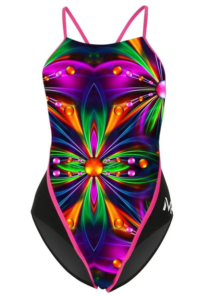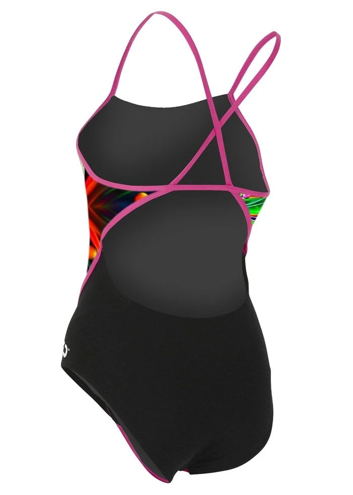 Take your swimming to another dimension with the colourful & symmetrical pattern print on this Girls Zita Racerback Swimsuit.
