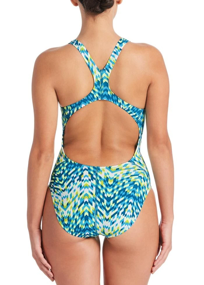 Featuring Nike Swim’s striking blue fury colour scheme, this one-piece Powerback costume features a higher neckline for greater coverage and support and a moderate racerback design with standard leg openings for free movement. Flat seams reduce the risk of chafing.