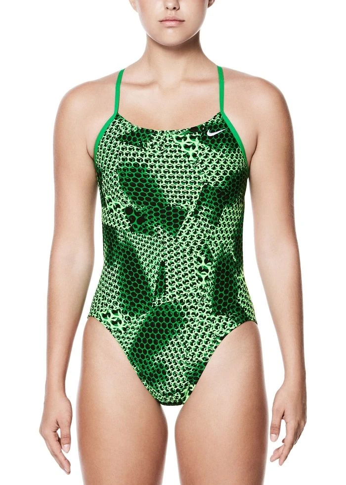 The Nike Nova Spark Girls swimsuit in Green has been printed with an eye-catching pattern that makes it hard to miss. This makes the Nova Spark swimsuit perfect both at a training session or even just a leisurely trip to the pool. Nike’s “Performance Poly” fabric means the suit is both resistant to chlorine and comfortable on the skin.