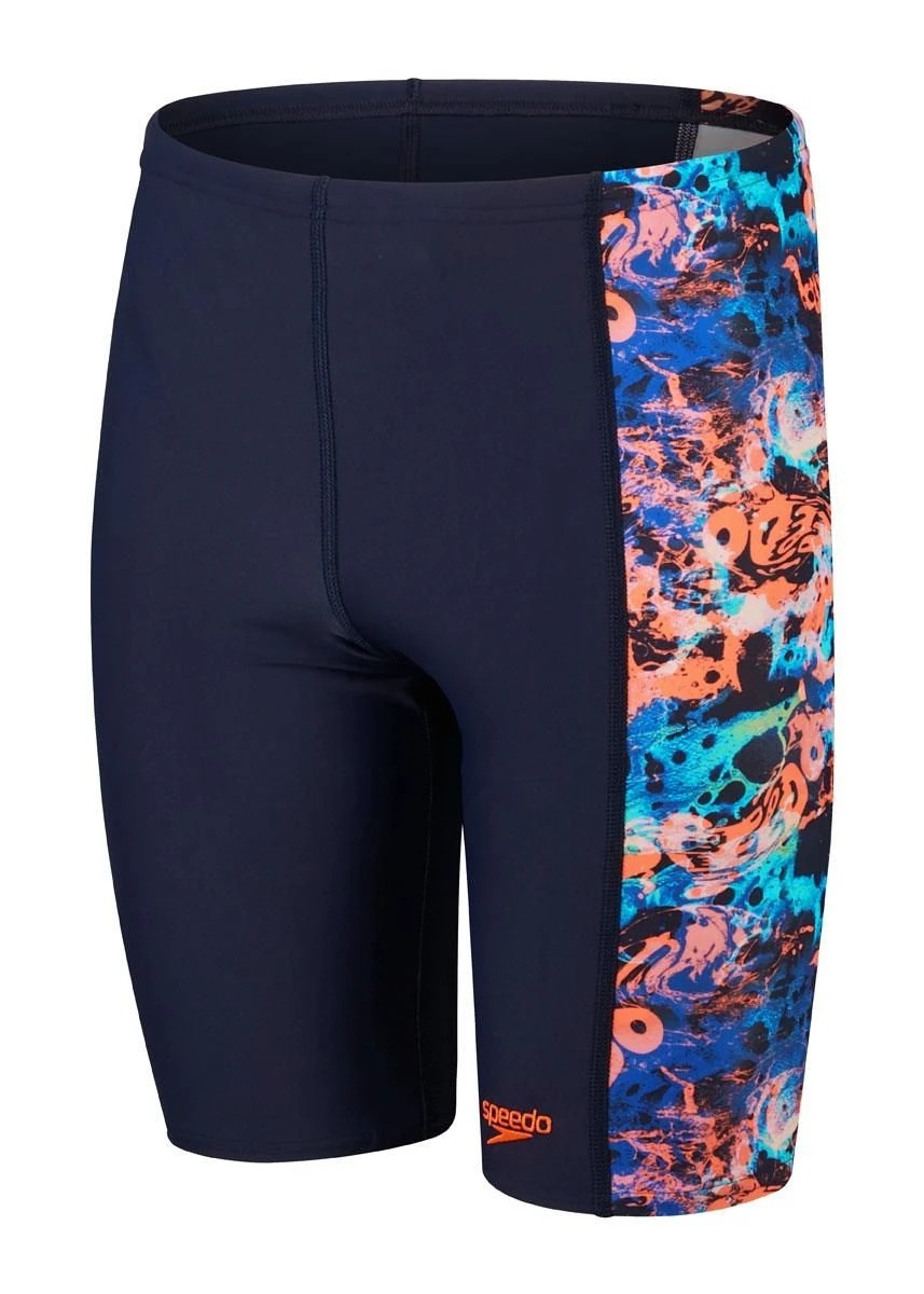 Splash, dive, and train in New Speedo Boy’s Allover Panel Jammer in True Navy!