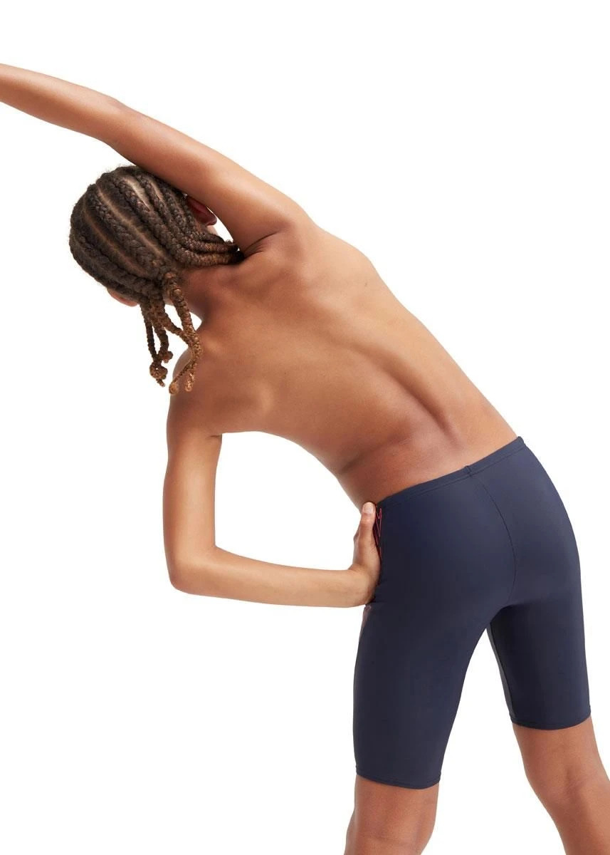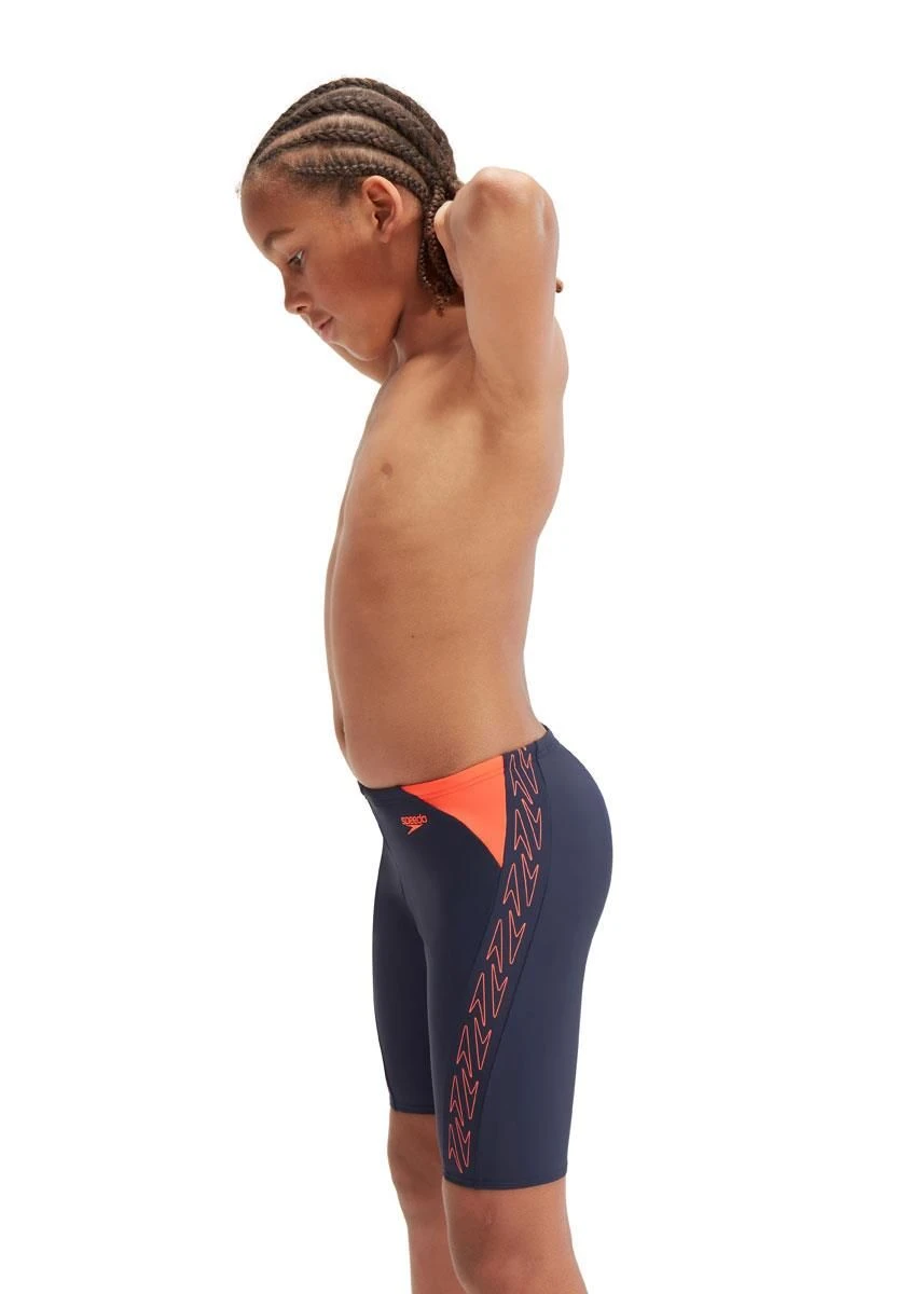 This sleek-look boys Hyper Boom Splice Jammer raids the archives to bring you a revival of Speedos iconic go-faster boom logo stripe in vivid black and bolt.