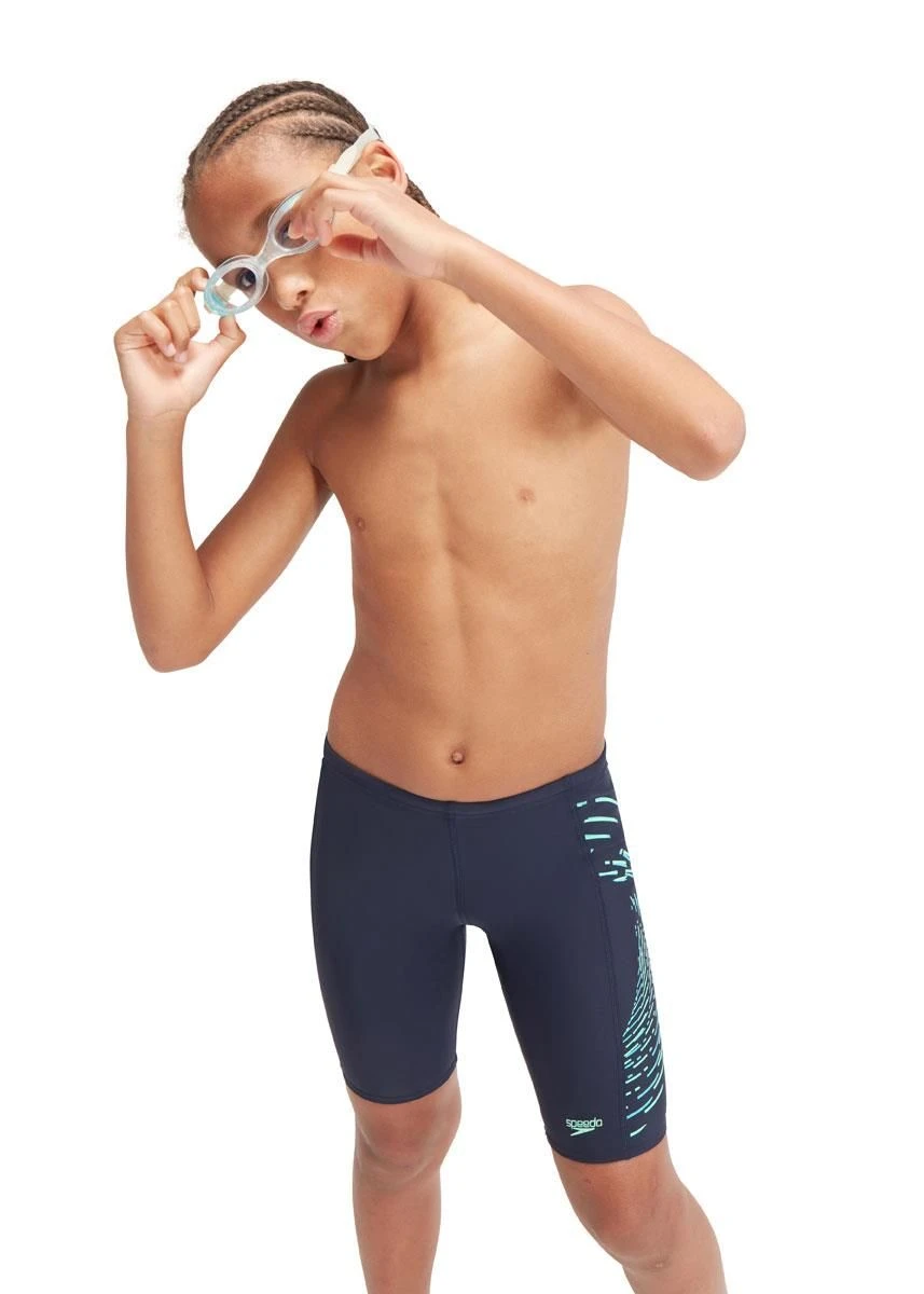 Featuring a blue and green ‘cresting wave’ plastisol graphic, this sleek-looking navy placement jammer is stylish and understated. Ideal for training, lessons, and fun in the pool, it’s v panel lined at the front for comfort and modesty and includes an internal drawcord to allow young swimmers to adjust the fit.