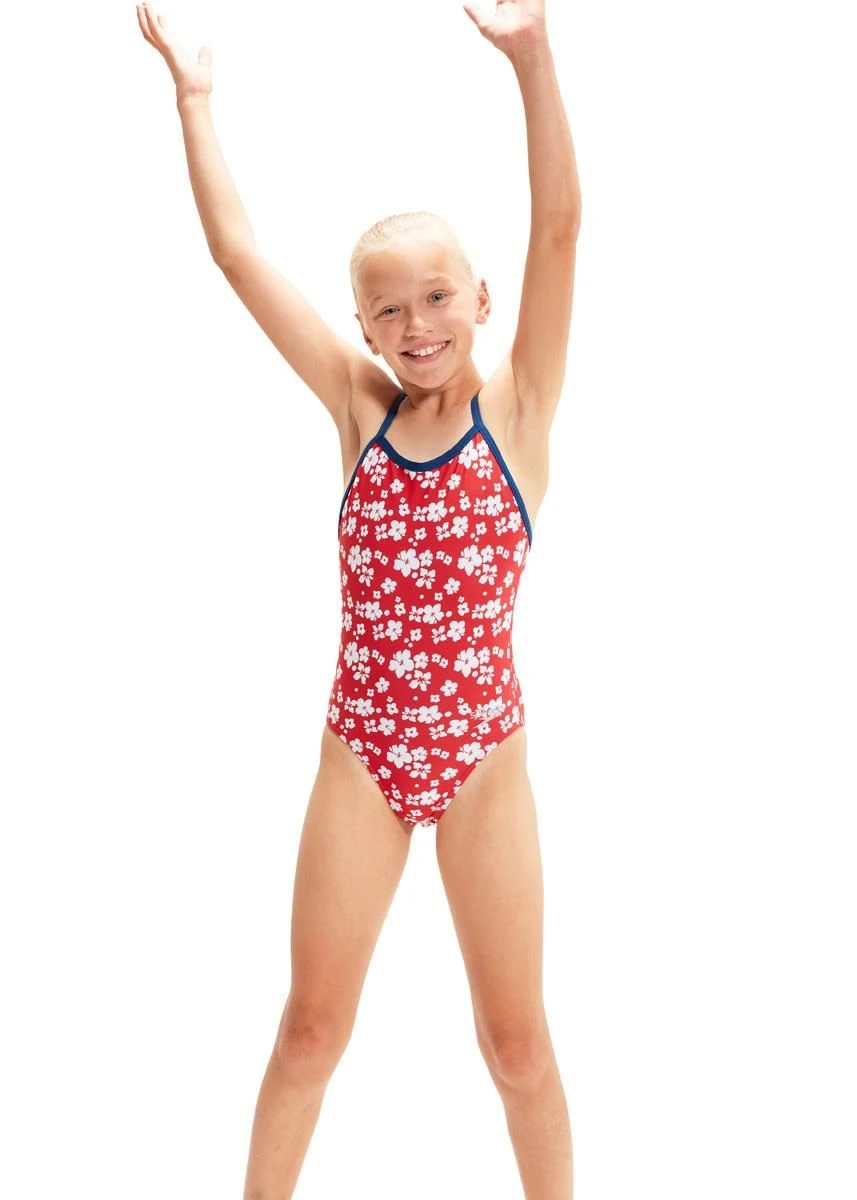 It’s a Bondi vibe, and we’re totally here for it. Featuring a bright red base and fun floral print, our Bondi Blossom Vback swimsuit oozes Aussie charm. A go-to for junior training, the simple Vback design with modest cut is comfortable to train in and provides maximum freedom of movement. Fully lined in ammonite blue for comfort and modesty. Made from Speedo ECO Endurance+ fabric, which is 100% chlorine resistant, quick-drying and made using 50% recycled materials.