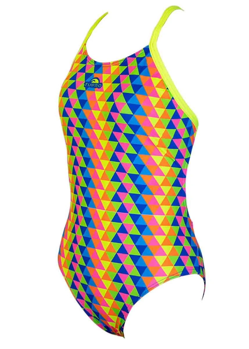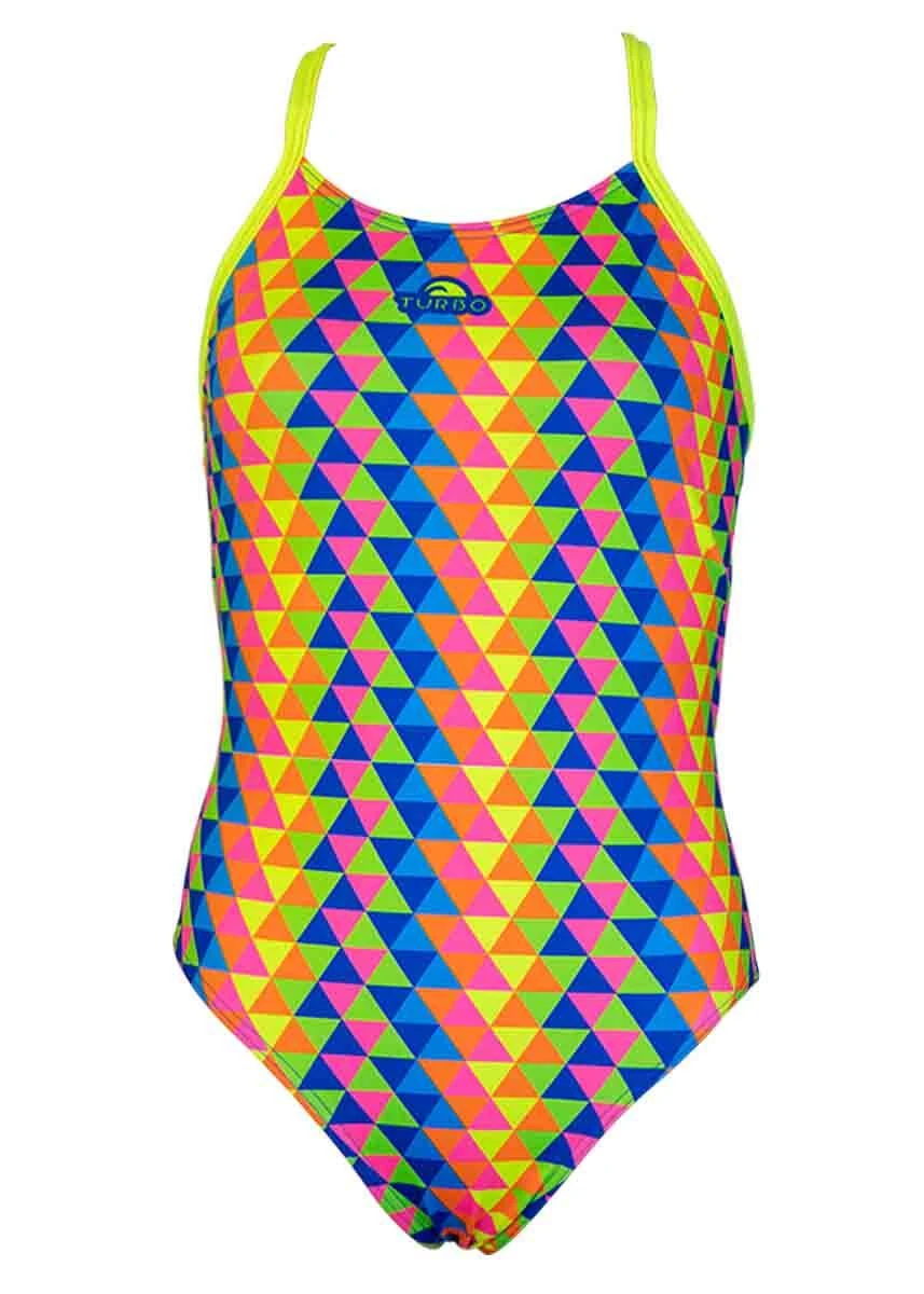 Printed with an eye-catching, geometric design, the girl’s Tridimension swimsuit from Turbo is perfect for training sessions and regular pool use.
