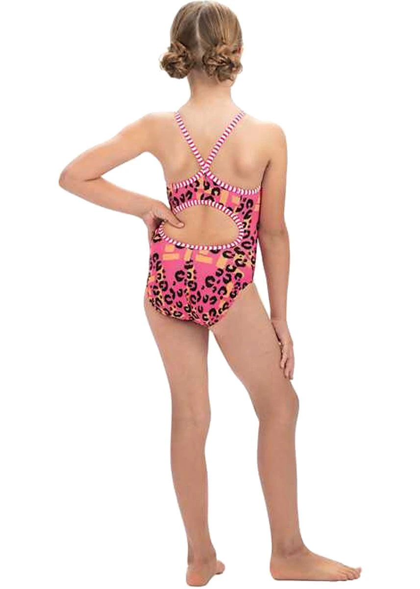 The girl’s RAWR Swimsuit is the perfect choice for young swimmers looking for a new durable swimsuit. Young swimmers will love this junior swimsuit’s vibrant pink and orange animal print with signature candy stripe binding.