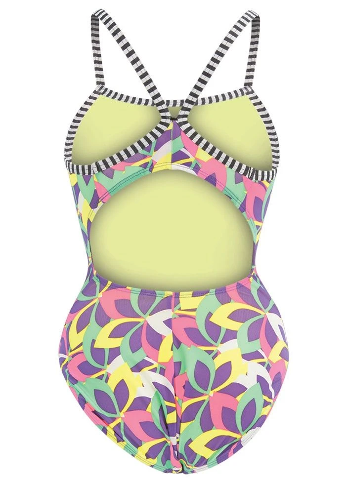 The V-2 back design sports the Uglies signature striped shoulder straps which join around a thicker band at the back to give modest coverage and excellent comfort during the long training sessions.