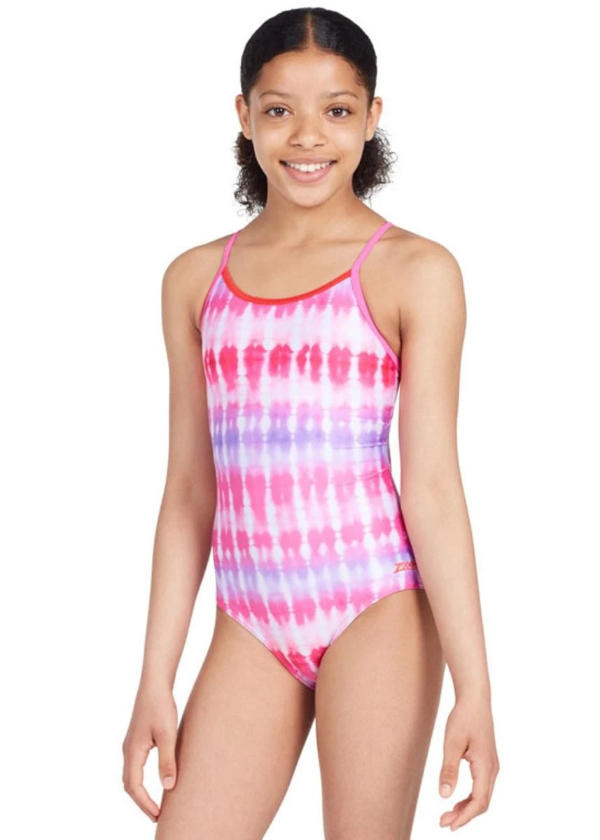 Pretty in pink! The Sunset Haze Startback is a stunning tie-dye effect suit in Zoggs unique Startback design. The thin, adjustable straps provide enhanced freedom of movement for comfort and ensures it fits all body types.